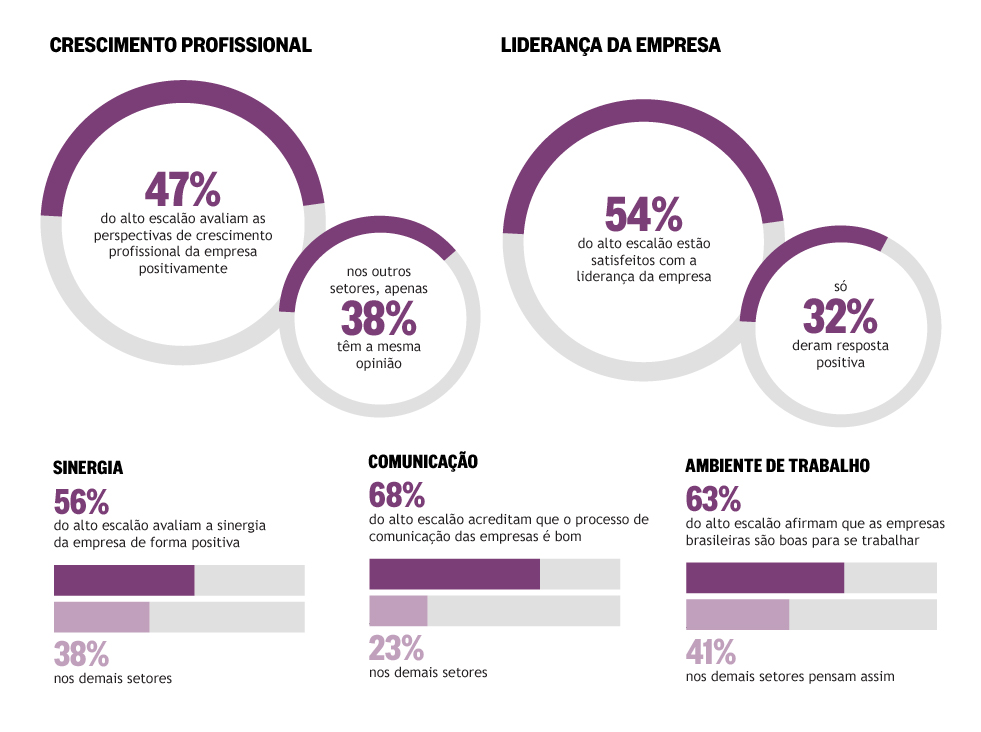 Os gestores do alto escalão e demais funcionários parecem falar línguas diferentes dentro das companhias. Este é o retrato do clima organizacional da maioria das empresas brasileiras, segundo estudo que foi realizado pela consultoria Agregga em parceria com o Instituto Imprendere. A pesquisa, feita com base em outros500 estudos realizados em companhias médias e grandes, identifica uma forte diferença entre a visão do alto escalão e a dos demais níveis hierárquicos.